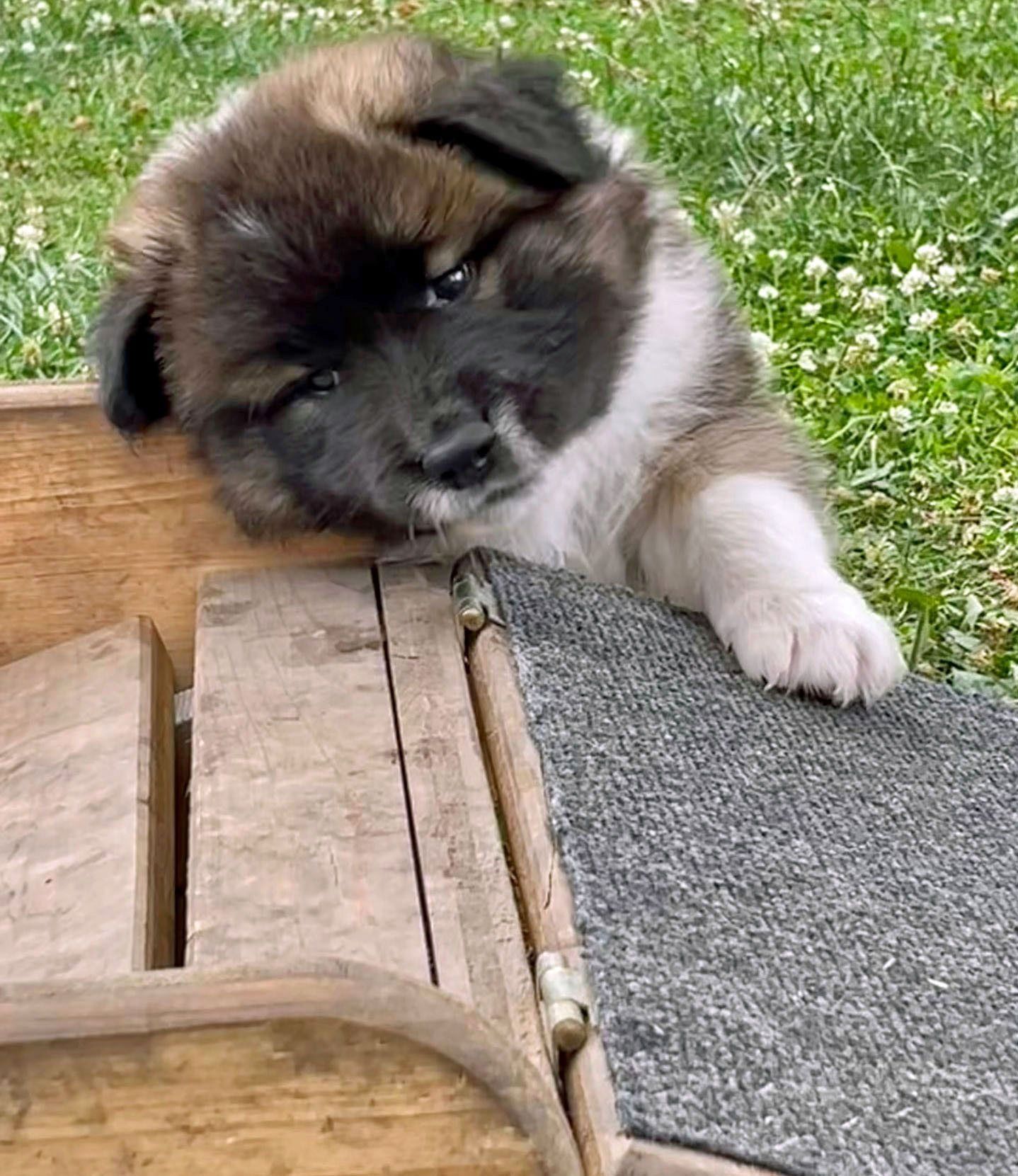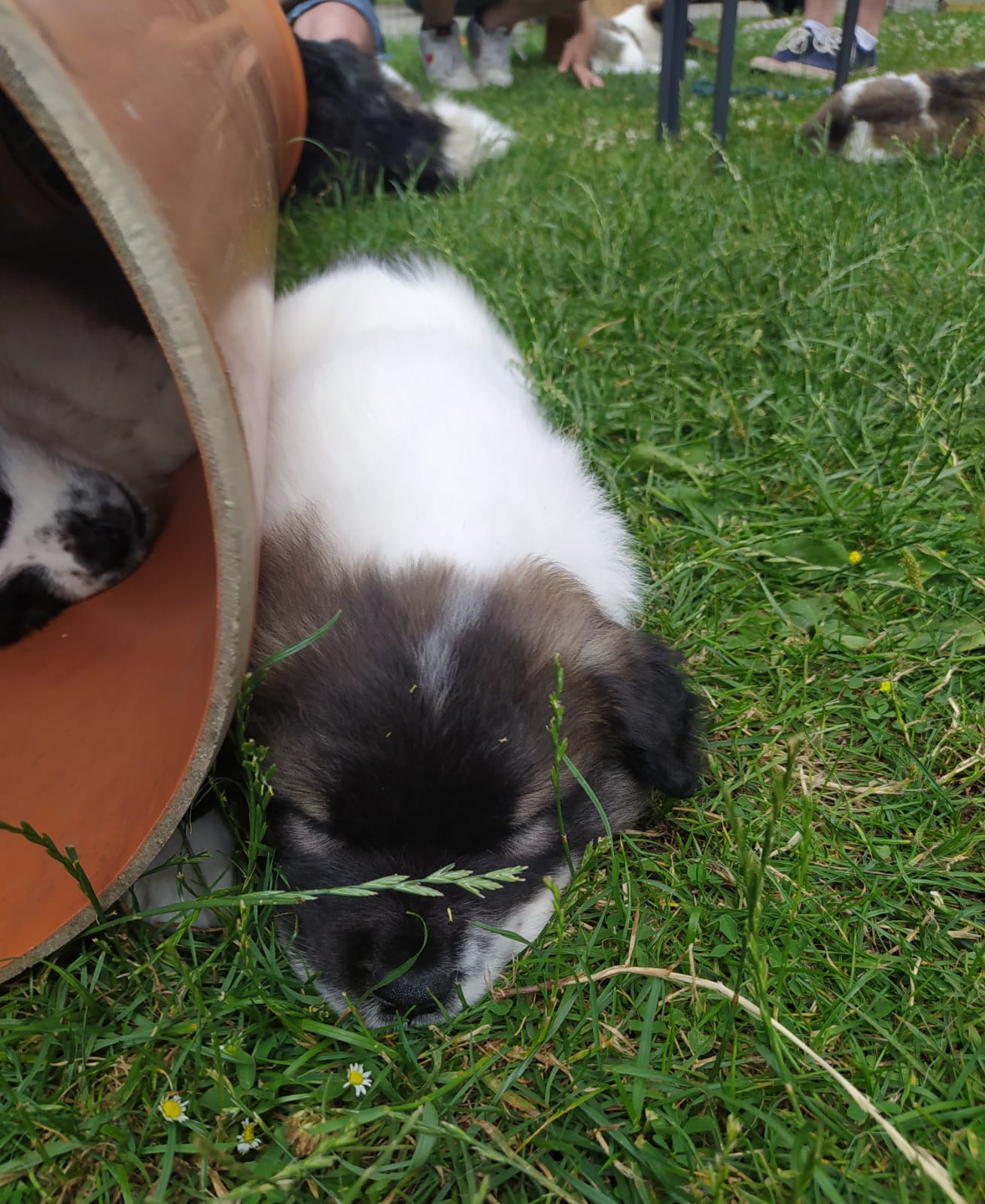 Offener,freundlicher Rüde, der sich sehr souverän bei einem schreienden Kleinkind verhielt. Im Umgang mit Artgenossen ist er sicher.